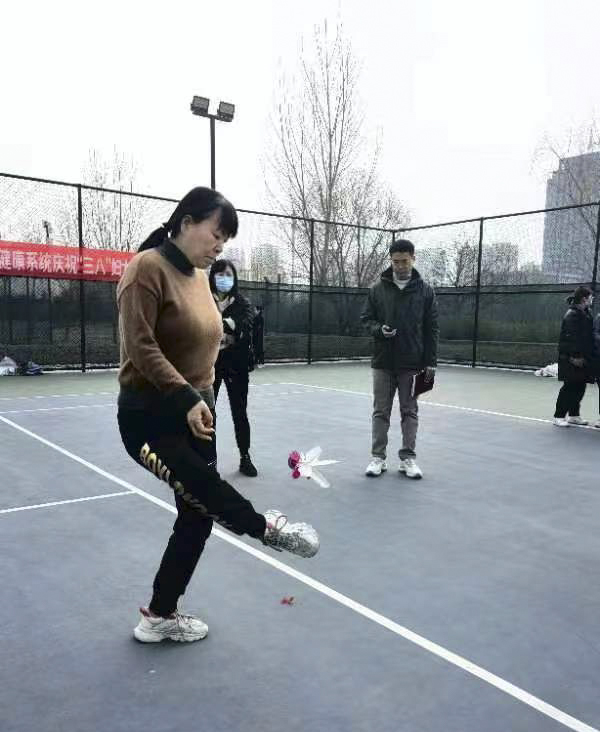 为庆祝第113个“三·八”国际妇女节,3月3日上午9时,泰安市卫生健康委、泰安市医务工会举办的市直卫生健康系统庆“三·八”女职工踢毽子比赛在泰安生态绿地健身活动中心正式拉开帷幕。