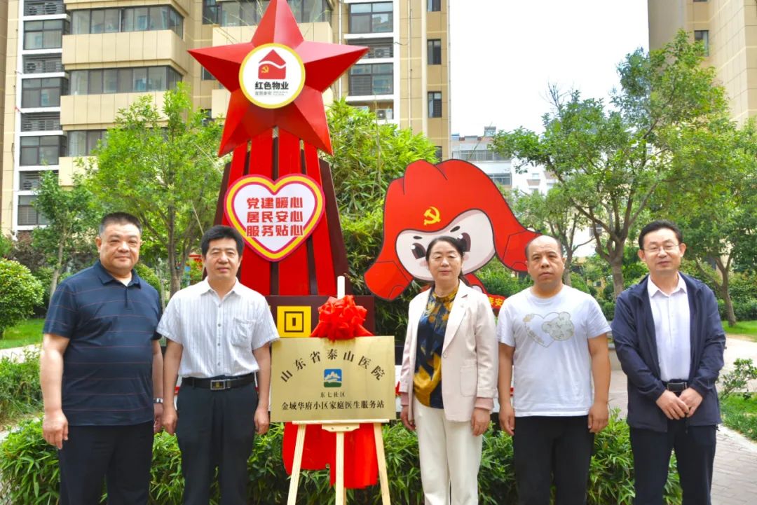 为深入贯彻落实省卫生健康委《“四送四进四提升”健康促进行动方案》以及《山东省推进家庭医生服务“六个拓展”“三个延伸”实施方案》要求,推动优质医疗资源下沉到群众身边,进一步发挥家庭医生作为居民健康“守门人”的作用,5月26日上午,山东省泰山医院与东七社区金域华府小区联合打造的家庭医生服务站正式揭牌启用。 山东省泰山医院党委副书记贺伟表示,近期,省卫生健康委相继出台文件,鼓励家庭医生服务由基层医疗机构向二三级医院拓展,山东省泰山医院作为省属三级公立医院,积极响应上级号召,在金域华府小区成立家庭医生服务站,定期派专家到社区坐诊,将省级优质医疗资源下沉到基层,为居民健康保驾护航。