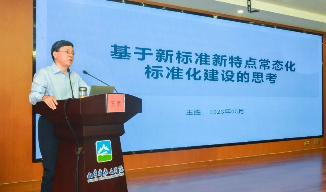 会议特邀北京积水æ½åŒ»é™¢èŠåŸŽåŒ»é™¢å…šå§”副书记ã€åŒ»é™¢æ ‡å‡†åŒ–评审专家王胜教授åšäº†é¢˜ä¸ºã€ŠåŸºäºŽæ–°æ ‡å‡†æ–°ç‰¹ç‚¹å¸¸æ€åŒ–æ ‡å‡†åŒ–å»ºè®¾çš„æ€è€ƒã€‹çš„ç²¾å½©æŽˆè¯¾ï¼Œå°±ä¸‰çº§åŒ»é™¢è¯„å®¡æ ‡å‡†ï¼ˆ2022年版)山东çœå®žæ–½ç»†åˆ™åšäº†æ·±å…¥è§£è¯»ï¼Œå¹¶å¯¹åŒ»é™¢æ ‡å‡†åŒ–建设和高质é‡å‘展工作进行了现场指导。