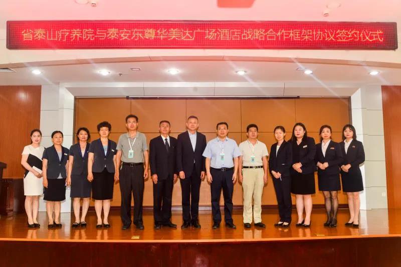 双方签署战略框架合作协议泰安东尊华美达广场酒店是泰安市首家挂牌五星级涉外花园式酒店,通过此次战略合作框架协议的签署,省泰疗将借助其丰富的酒店管理服务经验,提升自身疗养保健接待能力和服务水平。签字仪式结束后,东尊华美达广场酒店与会人员参观了医院疗养保健服务设施。泰疗疗养保健部相关负责人参加上述活动。(文|疗养保健部 高健 图|冯睿)