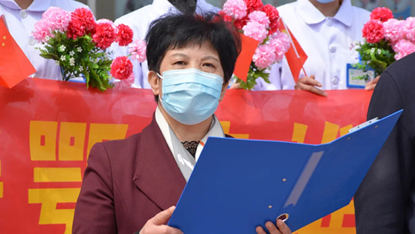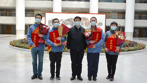 纪委书记贺伟ã€å‰¯é™¢é•¿è‹—åŽå†›å’ŒåŒ»ç–—队员尹弘伟ã€åŸæ™“åŽå±•ç¤ºå±±ä¸œçœæ”¯æ´æ¹–北医疗队队员ç¾å防护æœ