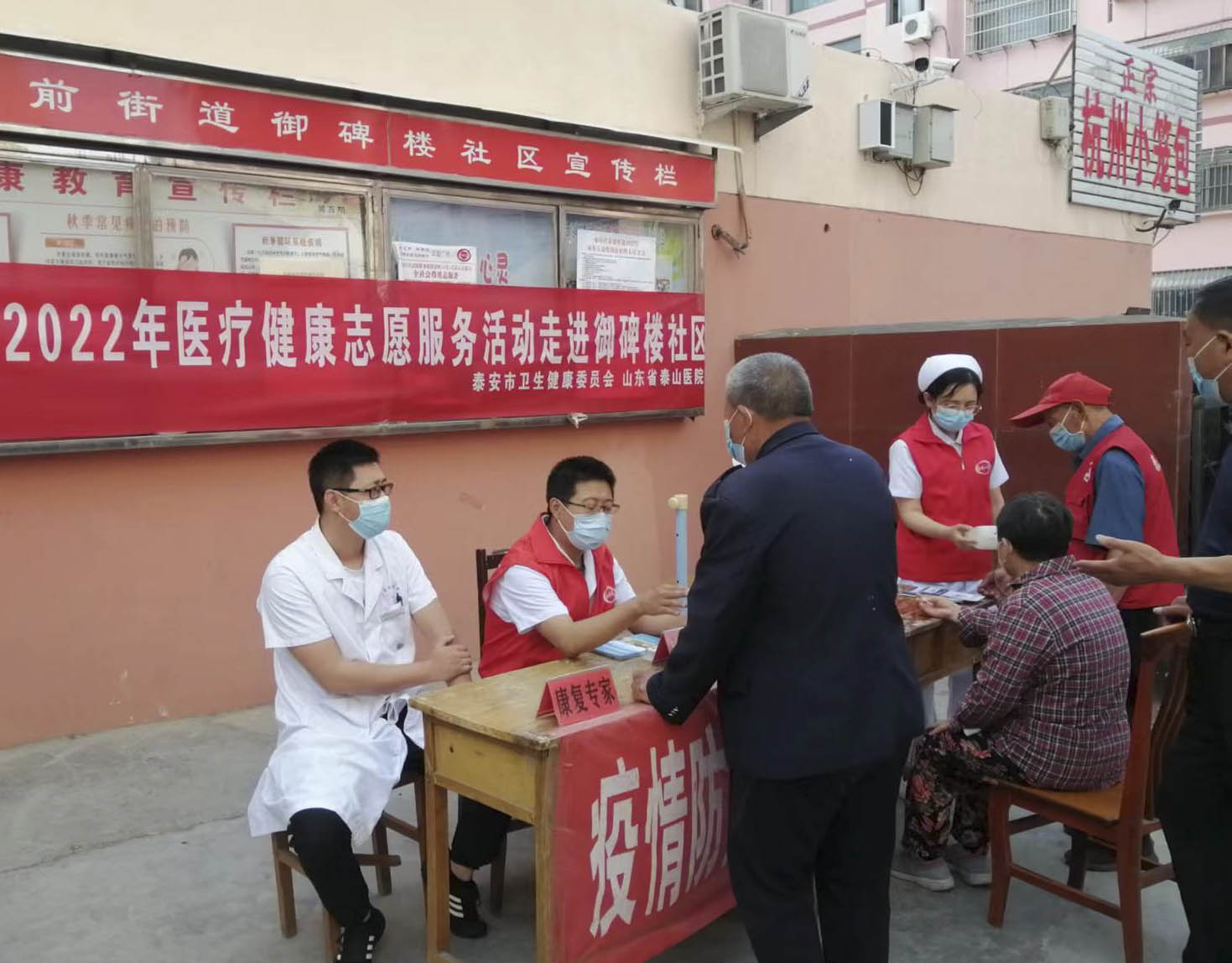 5月26日上午,山东省泰山医院走进御碑楼社区开展泰安市2022年医疗健康志愿服务活动,在端午节到来之际为社区百姓送上一份“健康礼”。