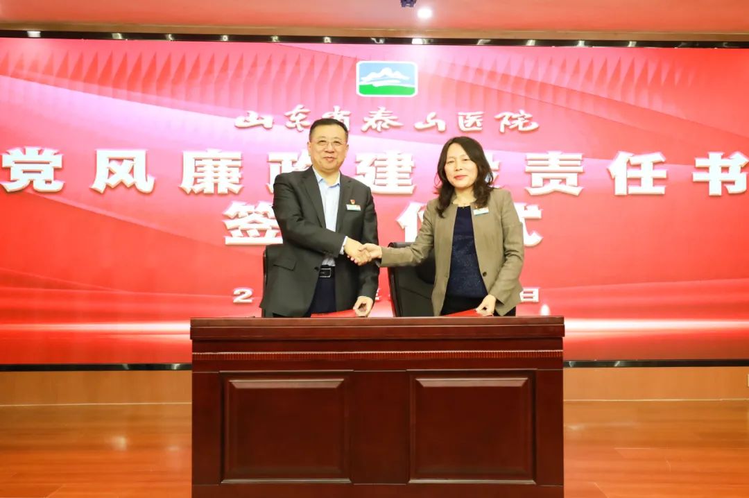 会上,党委副书记贺伟传达了《2024年山东省泰山医院党的建设工作要点》,党委委员、纪委书记付楠传达了《2024年山东省泰山医院党风廉政建设工作要点》,党委委员、总会计师刘亮传达了《山东省泰山医院“强纪律、转作风、提能力”专项行动方案》,党委书记毛军胜同班子成员、支部书记、科主任代表签订《2024年党风廉政建设责任书》。