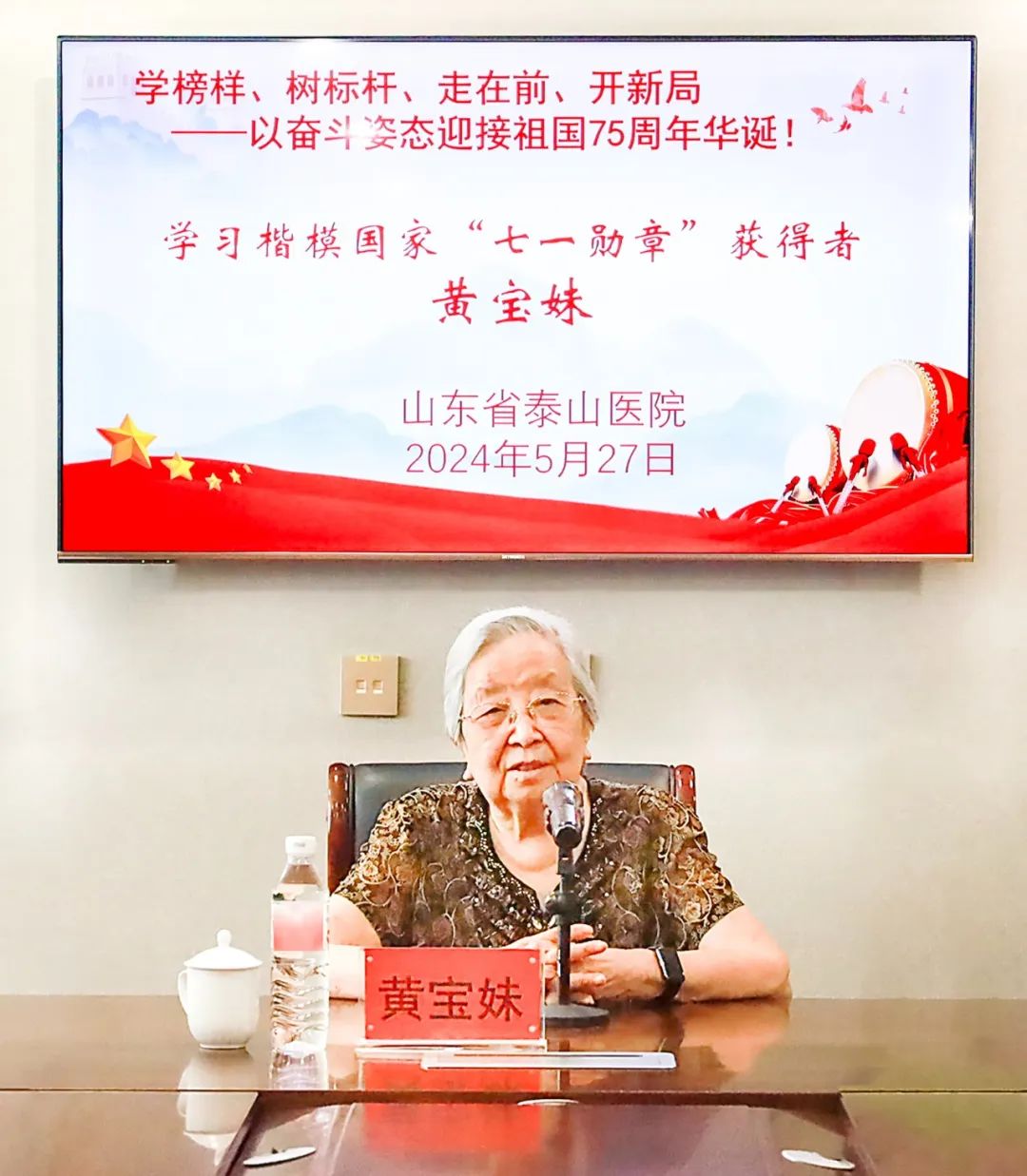 为充分发挥先进模范人物的精神引领、典型示范作用,引导医院广大干部职工坚定理想信念、赓续奋斗初心,5月27日,山东省泰山医院举办“学习好榜样——党的八大代表、全国劳动模范、‘七一勋章’获得者黄宝妹”报告会。黄宝妹,作为国家发展的见证者、参与者、奉献者,是新中国第一批劳模,受到毛泽东、周恩来等老一辈党和国家领导人的亲切接见;2021年6月29日,习近平总书记亲自授予黄宝妹“七一勋章”。医院领导班子成员,各党支部书记以及部分行政、临床科室职工,青年代表参加了本次会议。