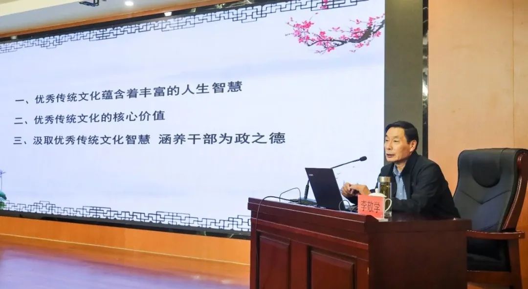 李敬学围绕“弘扬优秀传统文化,涵养干部为政之德”这一主题,紧密结合当前医院工作实际,深刻阐述了儒家思想蕴含的治国理政、修身智慧和以仁爱为本的核心价值体系,从修身立德、强化自律、知行合一、修己安人等方面,对党员干部、医务工作者如何更好地汲取儒家思想精髓、涵养干部为政之德、树牢为民思想、增强法治思维、严守党纪法规等方面进行了深入浅出地精彩讲授。