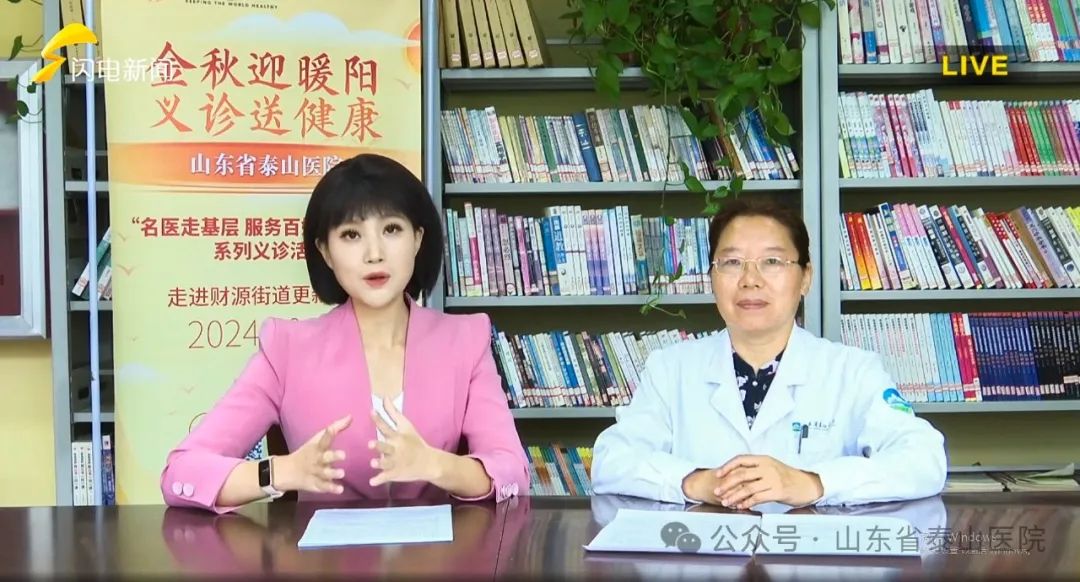 在义诊期间,山东省健康科普库专家、山东省泰山医院老年医学中心主任刘新凤做客直播间,就“三高”应该如何控制和治疗,老年人多病共存应该如何就诊等居民关注的问题进行科普直播。