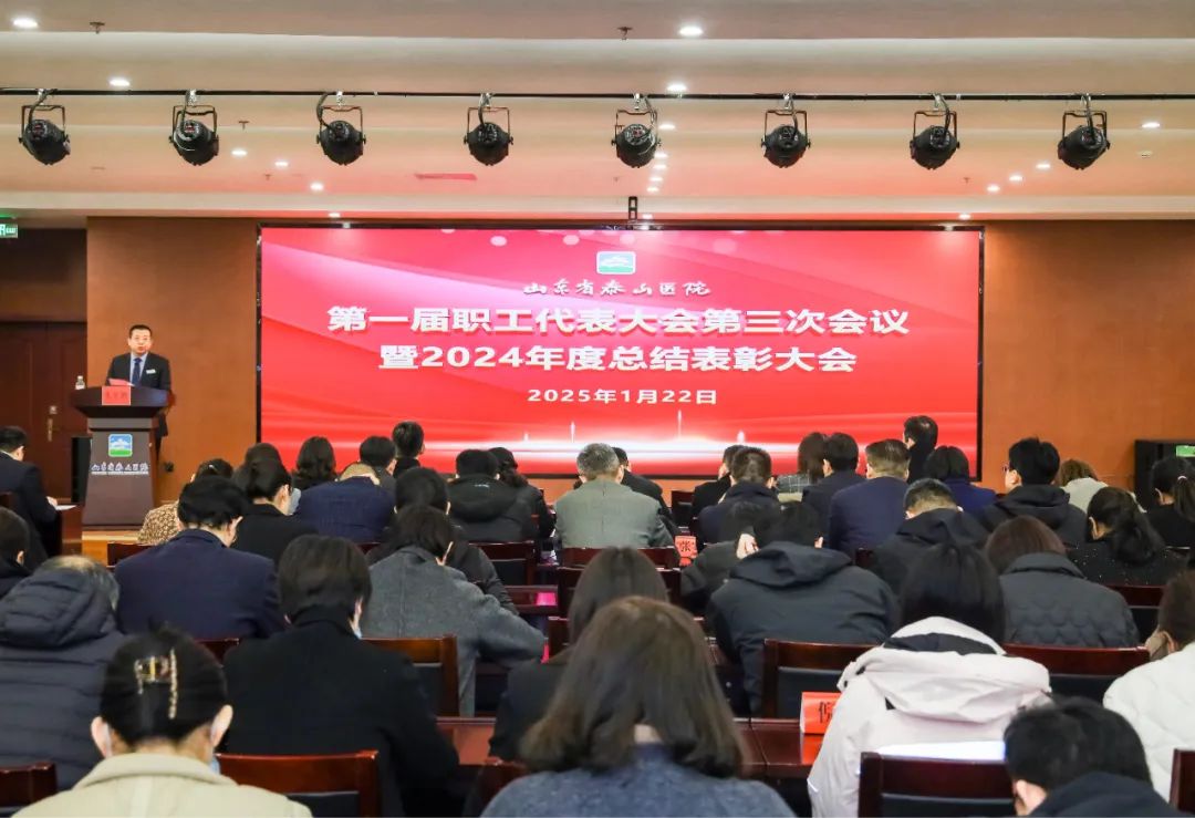 2025å¹´1月22æ—¥ï¼Œå±±ä¸œçœæ³°å±±åŒ»é™¢å¬å¼€ç¬¬ä¸€å±ŠèŒå·¥ä»£è¡¨å¤§ä¼šç¬¬ä¸‰æ¬¡ä¼šè®®æš¨2024年度总结表彰大会。院领导çåæˆå‘˜ã€èŒå·¥ä»£è¡¨ã€åˆ—å¸ä»£è¡¨å…±110余人å‚åŠ ä¼šè®®ã€‚ä¼šè®®ç”±å…šå§”å‰¯ä¹¦è®°ã€å·¥ä¼šä¸»å¸è´ºä¼Ÿä¸»æŒã€‚