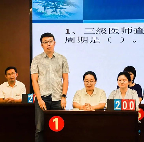 庆ç¥å¤§ä¼šå‰ï¼ŒåŒ»é™¢åŒ»åŠ¡éƒ¨ç»„ç»‡å¼€å±•äº†çŸ¥è¯†ç«žèµ›ï¼Œ8支代表队的24å队员展开了激烈角é€ï¼Œå……åˆ†å±•çŽ°äº†çœæ³°åŒ»åŒ»åŠ¡äººå‘˜è‰¯å¥½ç²¾ç¥žé£Žè²Œã€‚
