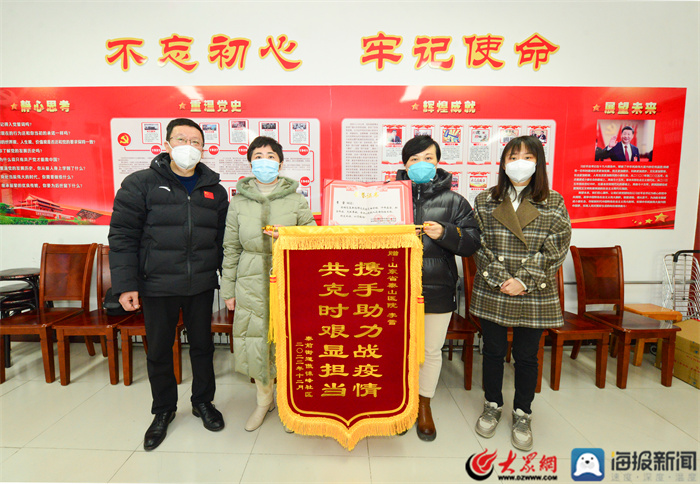 1月4日上åˆï¼Œæ³°å‰è¡—é“åŠžäº‹å¤„å‚²å¾•å³°ç¤¾åŒºå…šå§”ä¹¦è®°è‘›æµ·ç‡•ä¸€è¡Œåˆ°å±±ä¸œçœæ³°å±±åŒ»é™¢ï¼Œå°†ä¸€é¢å†™æœ‰â€œæºæ‰‹åŠ©åŠ›æˆ˜ç–«æƒ… 共克时艰显担当â€çš„锦旗é€åˆ°å¤–科主管护师æŽé›ªæ‰‹ä¸ï¼Œæ„Ÿè°¢æŽé›ªä¸ºç¤¾åŒºç–«æƒ…防控工作所æä¾›çš„æ— ç§å¸®åŠ©ï¼ŒåŒæ—¶å¯¹å¿™ç¢Œåœ¨ä¸€çº¿çš„广大医护人员致以崇高敬æ„。院党委副书记ã€é™¢é•¿åˆ˜é£Žæž—å‚åŠ ã€‚